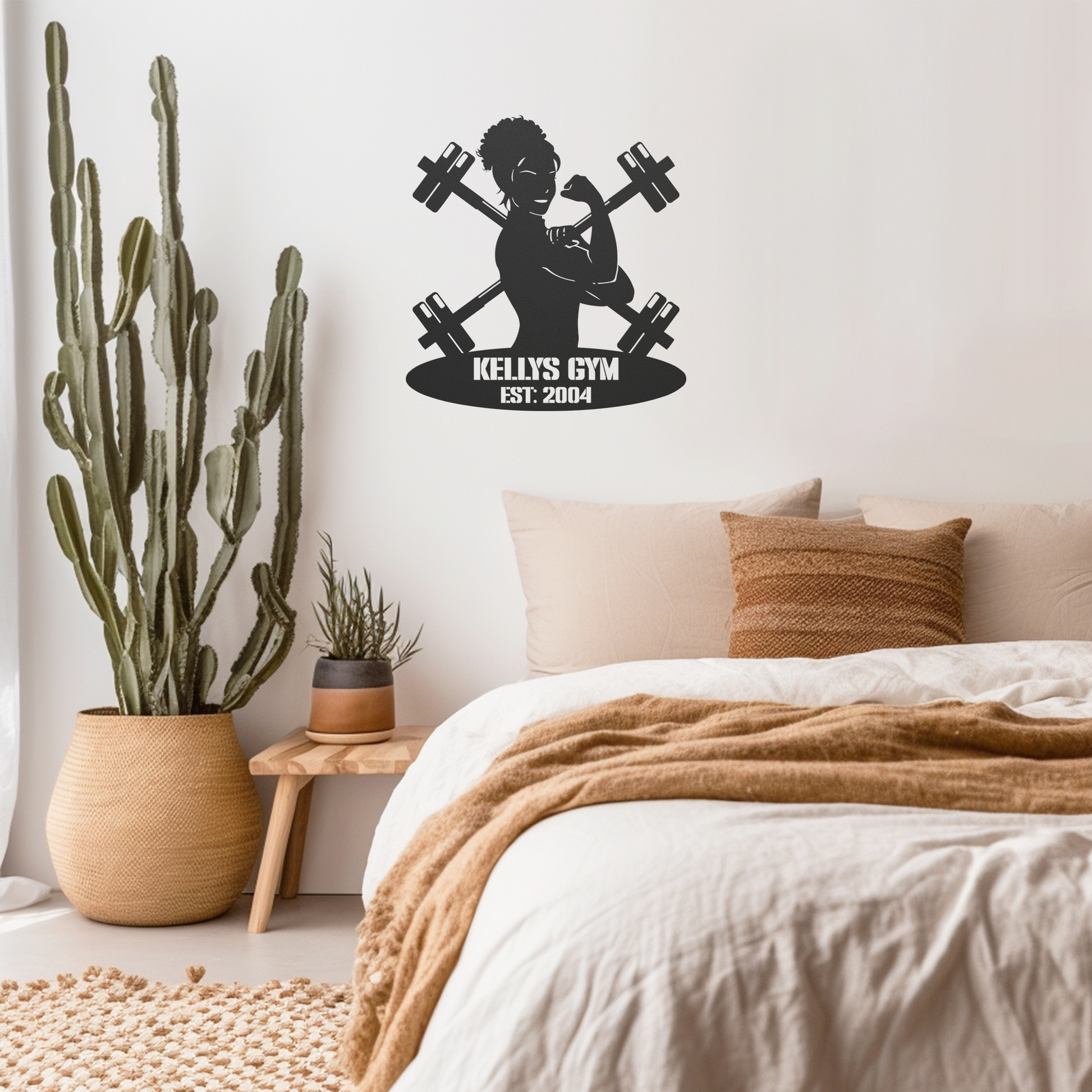 Elevate your home decor with this beautiful custom metal sign. Add a name to personalize and make your sign unique to you! Imagine this gorgeous metal sign hanging in your room or gym. Its stunning looks remind you of why you enjoy this passion so much! Add more vibes and a serene atmosphere with this Sign. Made with 18 gauge steel and powder coated in your choice of 5 colors, this sign is built to withstand the elements for years of enjoyment. Add a touch of elegance to your home on the inside, outside, or both! Make for perfect gifts or a little treat for you. If you are passionate about the gym then commemorate it with this lovely sign!